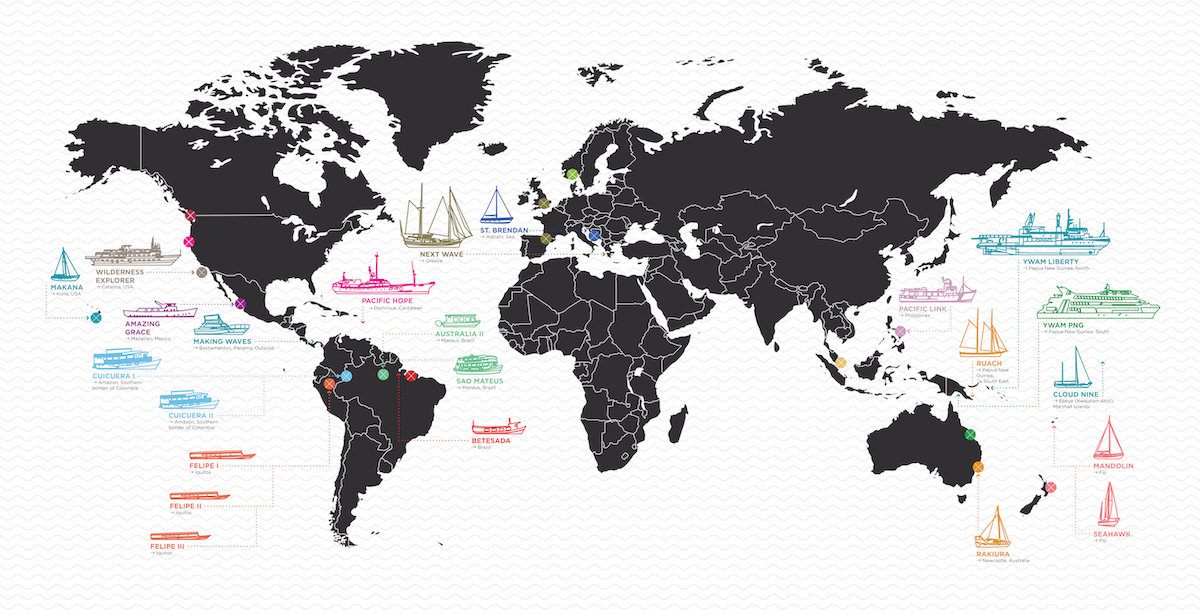 This map only depicts some of Youth With A Mission’s vessels and supporting campuses. Partner vessels not represented.